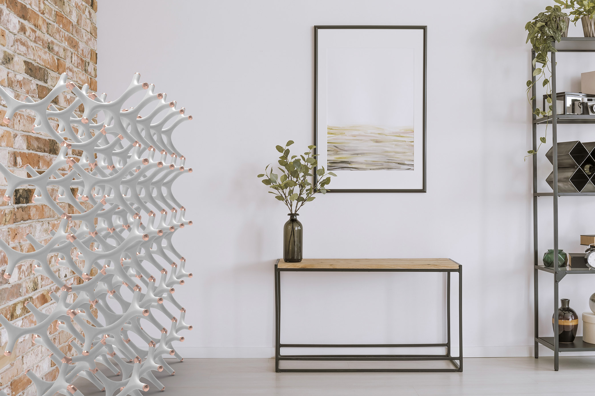 The individual modules are hollow and can be filled with water. Water is able to evaporate through the porous ceramic walls, creating the desired cooling effect. The modular structure is inspired by the lattice structures found in crystalline materials, thus maximizing the air circulation around the cooler. This modularity also provides the flexibility to adapt an evaporative cooler to individual needs.