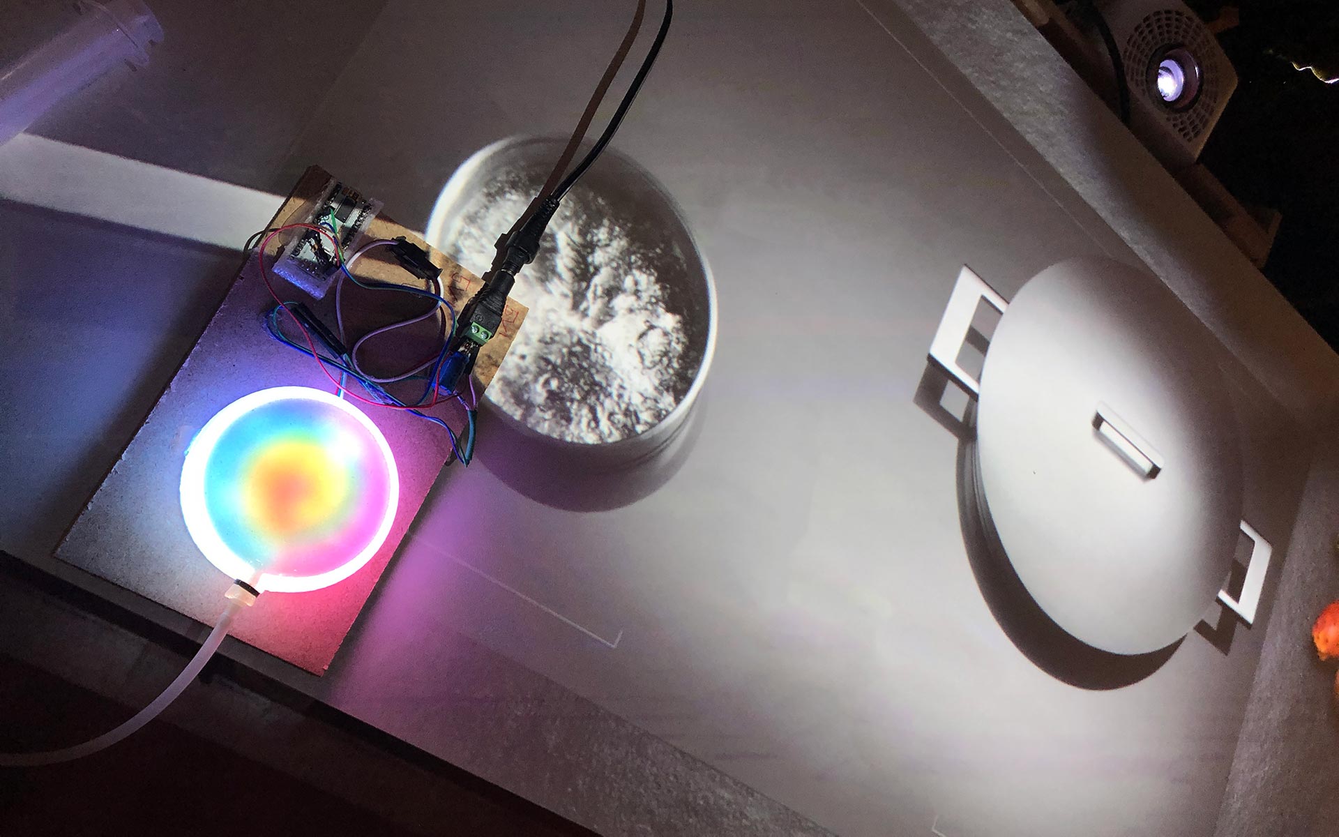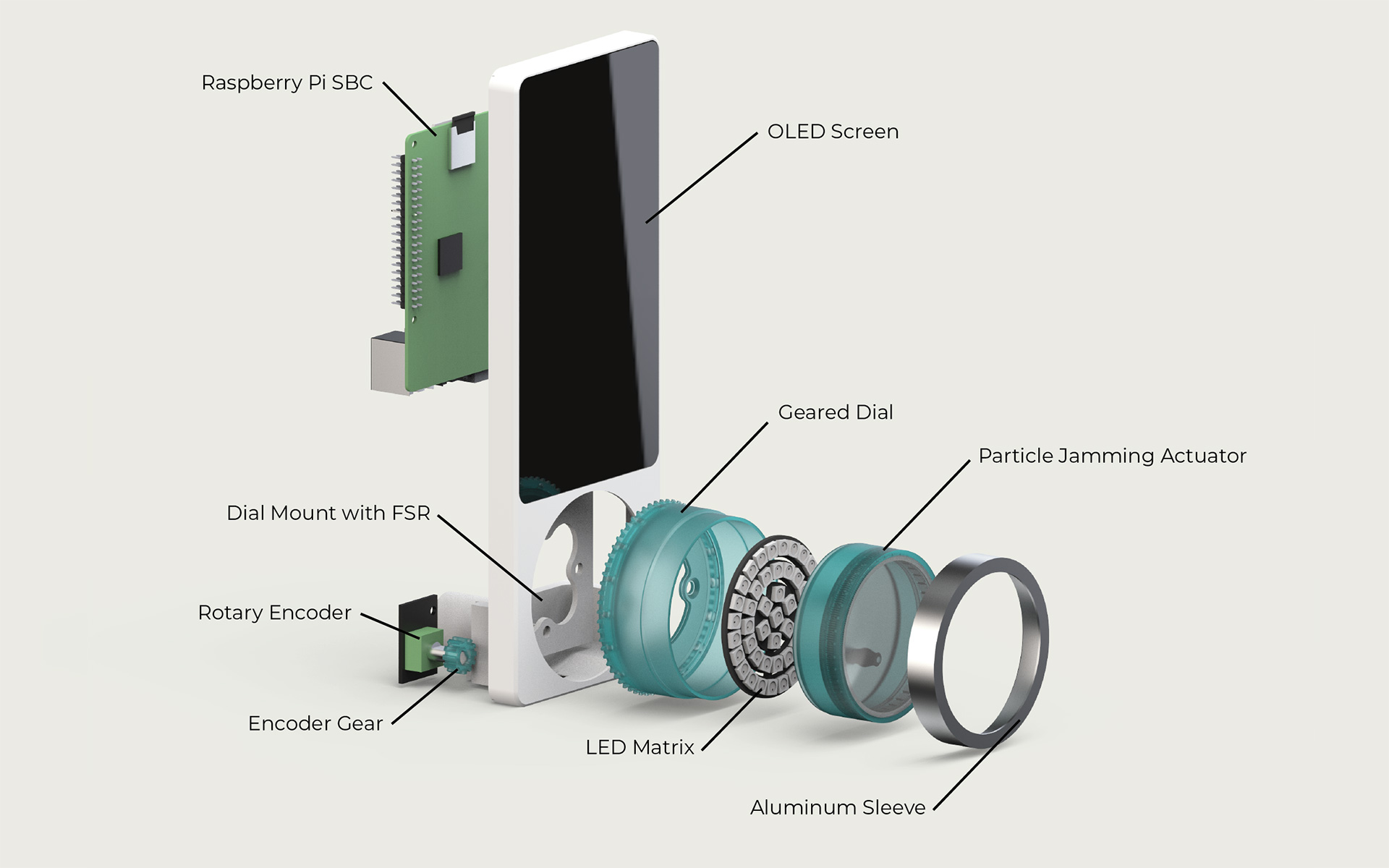 Building on interaction modalities and knowledge generated during my prior exploration of multisensory devices, I created a multimodal dial that leverages particle jamming and light diffusion to produce haptic, spatial, and visual cues. The dial can modulate its stiffness, volume, texture, and color – allowing it to embody data in a contextually relevant form. Its haptic properties, for example, enable users to feel changes in baked goods as though they were directly experiencing them. Advanced information, such as data recorded by a multi-point temperature probe, can be explored spatially: Pressure sensors allow the dial to track and visually respond to the depth of a finger in the actuator, adding a third spatial dimension to the interface.