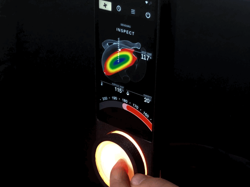 The outcome was a multimodal dial that physically adapts digital information to its context of use. Complex data sets (e.g., heat distribution data of a core temperature sensor) can thus be experienced spatially and are rendered contextually meaningful to the senses.